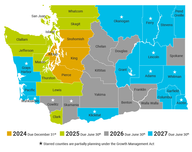 Washington State requires every county and city to conduct a periodic update every 8 years to their comprehensive plans under the Growth Management Act (GMA). Multiple organizations have collaborated to create a Sound Choice Checklist for Comprehensive Plans that provides a critical and detailed guide for the update process, particularly in regard to Puget Sound recovery.